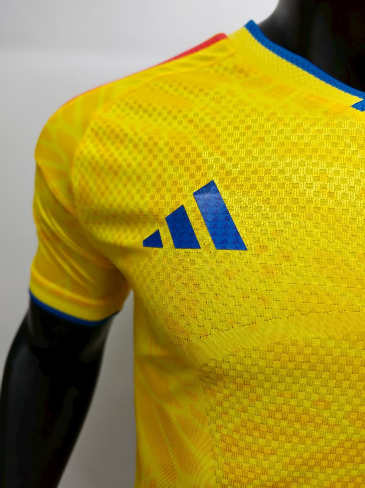El diseño, que combina el tradicional amarillo característico del equipo con un patrón sutil y elegante de alas de mariposa, busca capturar la esencia del país: su diversidad, su energía y su capacidad de volar alto. Cada detalle rinde tributo al espíritu colombiano y a su historia cultural y deportiva. Las mariposas, representadas en el mismo tono y eternizadas en la cultura y biodiversidad de Colombia, se convierten aquí en un emblema visual que une la pasión por el fútbol con el arte, simbolizando la magia y la alegría que identifican a Colombia en el mundo.